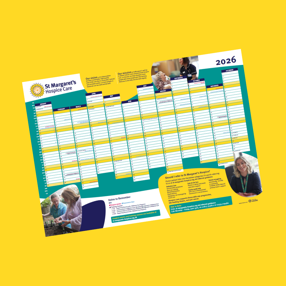 As we plan for another year of compassionate care across Somerset, St Margaret’s Hospice would like to offer your practice a free 2026 wall planner.