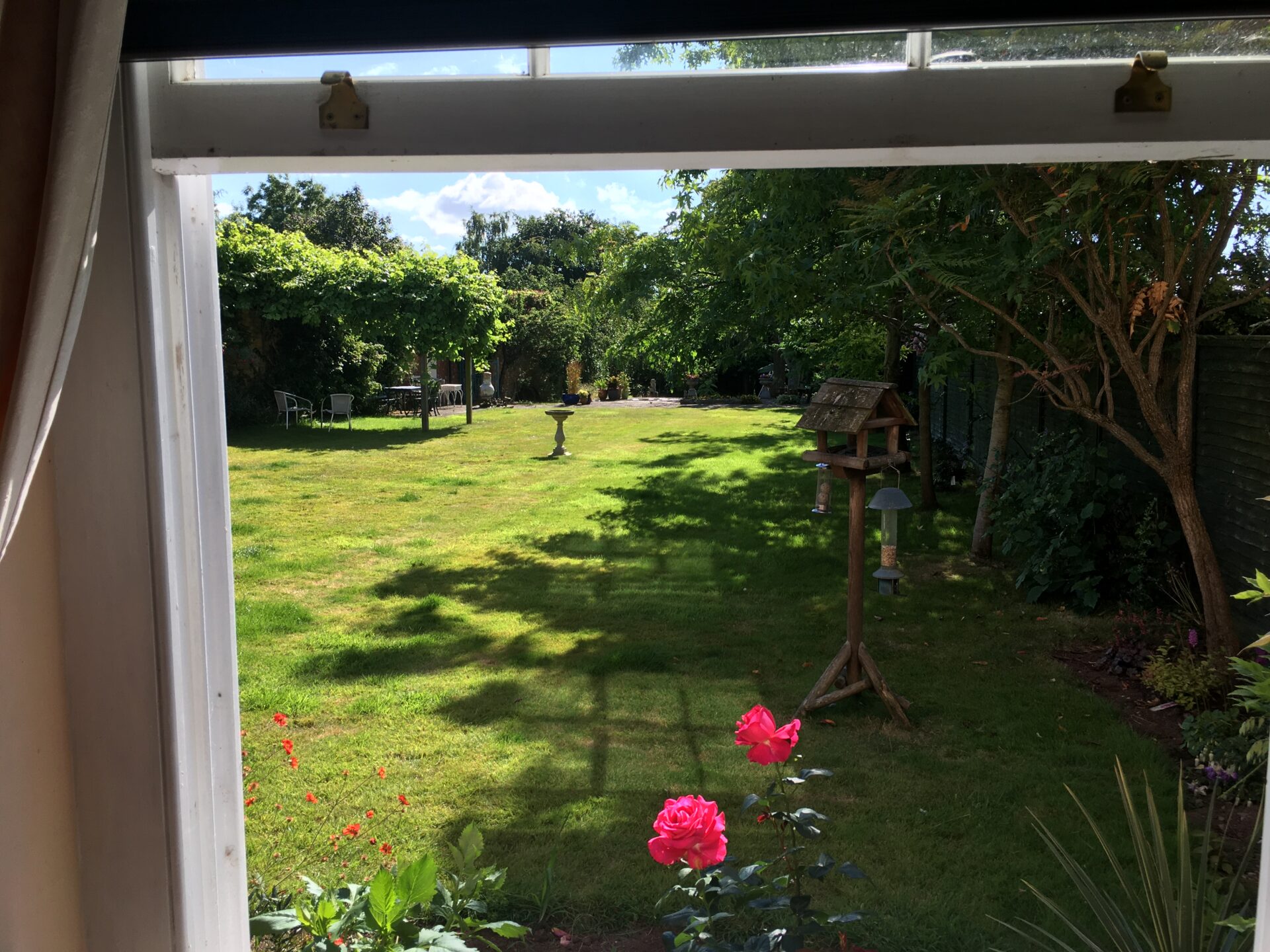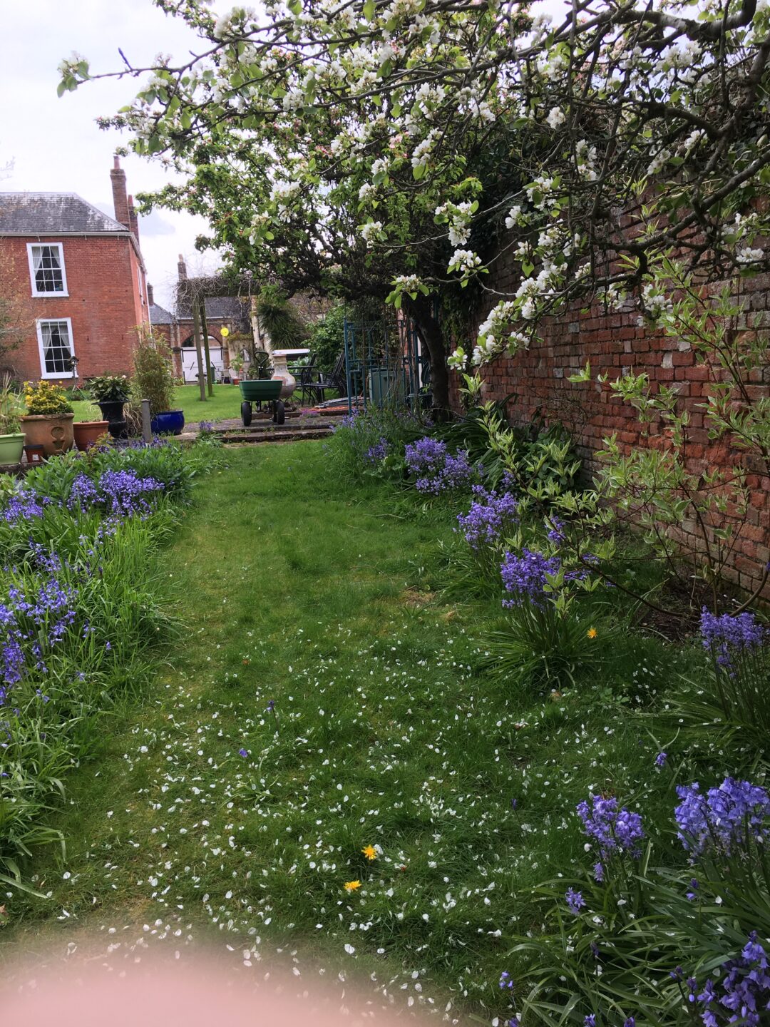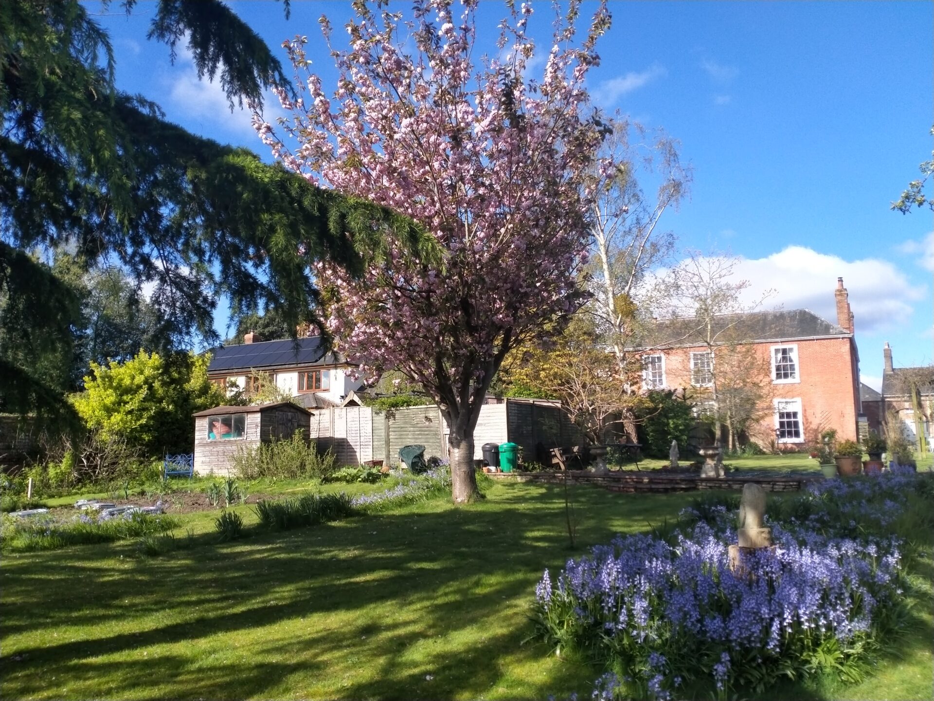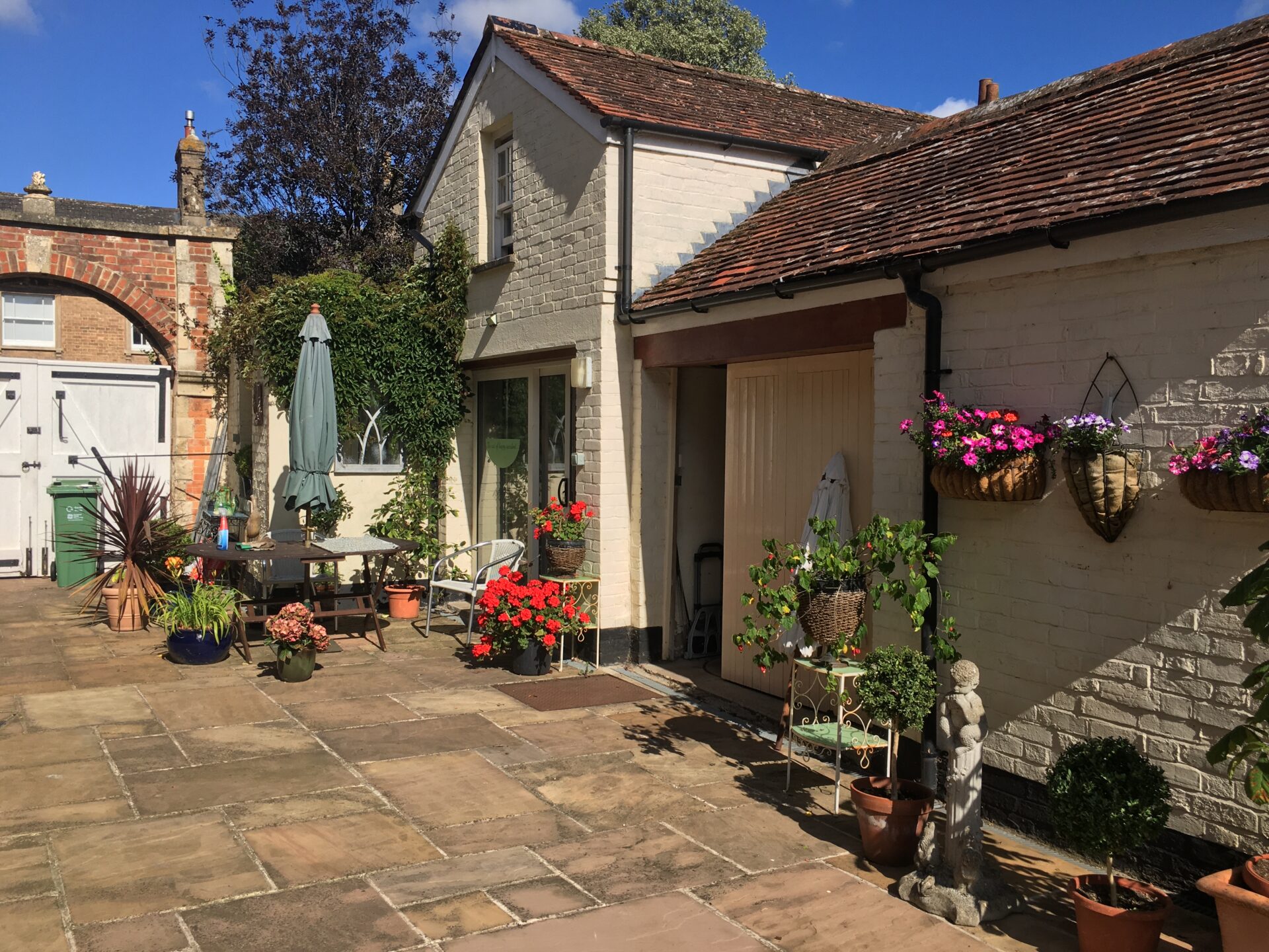 The Coach House is part of an 18th-century listed building in the centre of Bishops Hull village with a large walled garden. Sadly, over the years, many of the original features have been lost; however, there are many mature trees, including a magnificent cedar. There is a large courtyard with colourful planters and tranquil seating areas, newly planted flower beds, and an old grape vine covering an arbour. At the lower end of the garden, a large pond forms the focal point of a lovely area abundant with wildlife.