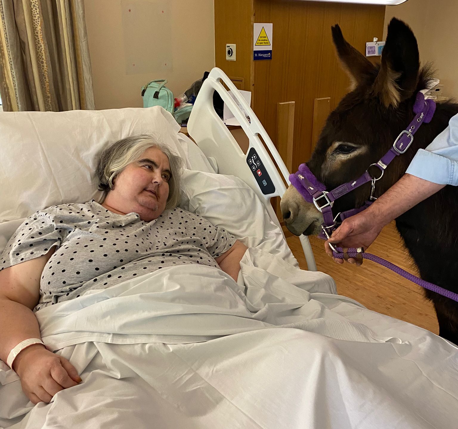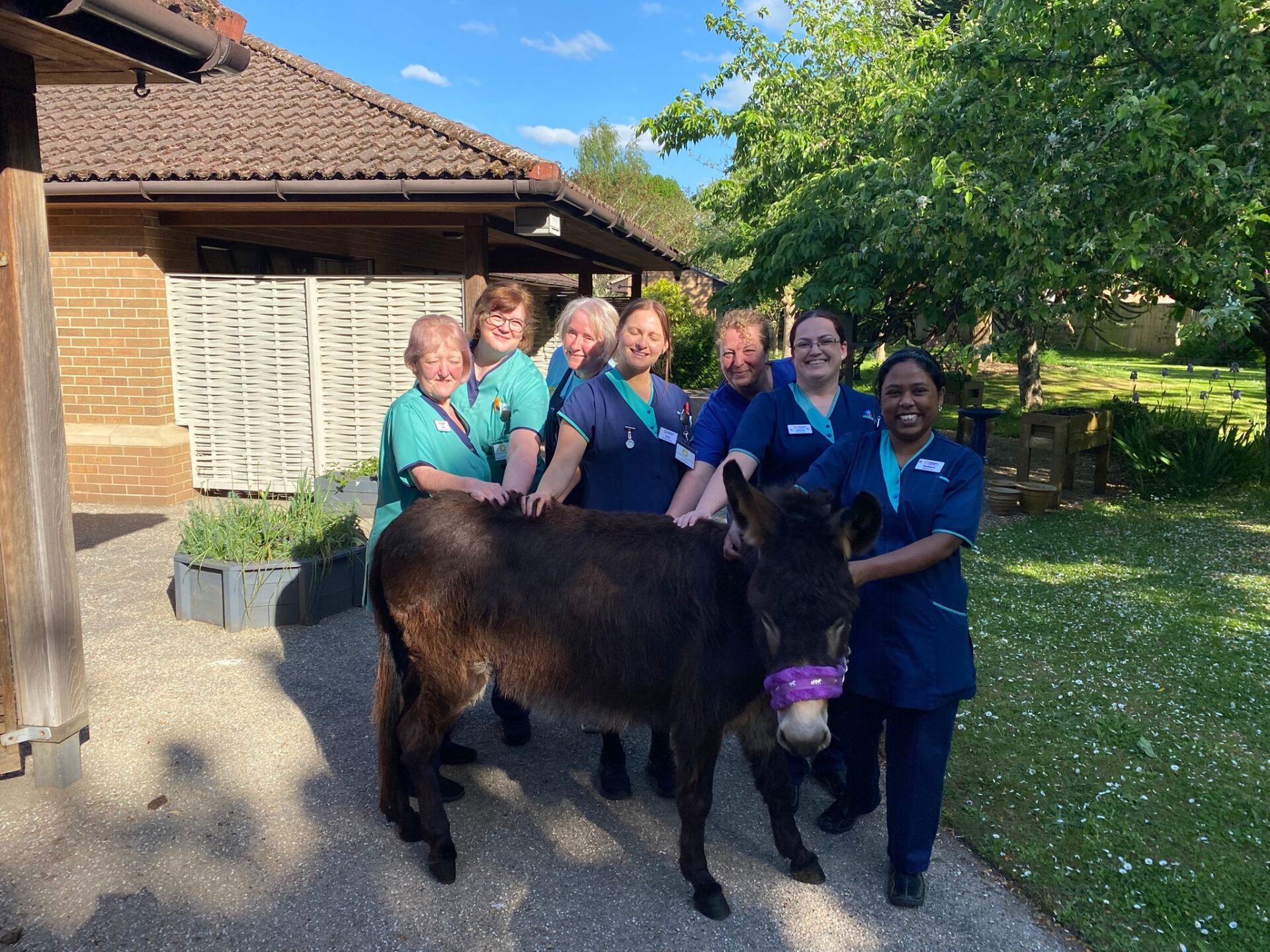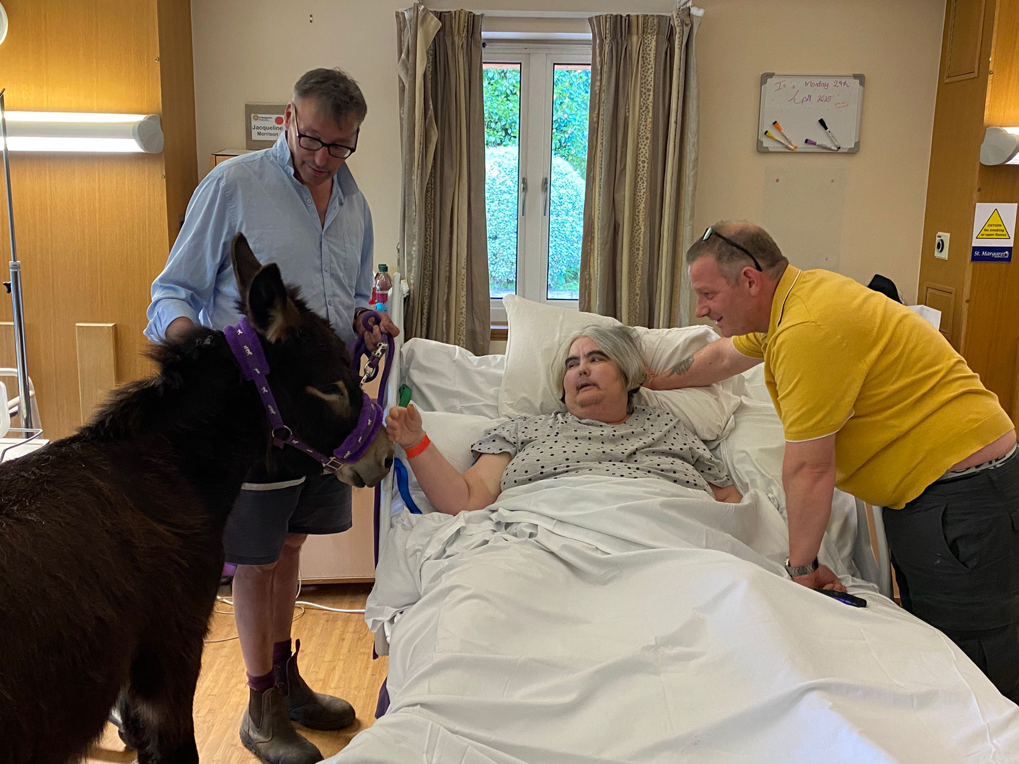 “They were able to locate a donkey named Britney, and the owners very kindly went out of their own way one Saturday afternoon and brought her in so Jackie could scratch the donkey,” Jason says. “It was just lovely to see Jackie’s face light up.” Britney calmly walked around the hospice, greeting patients, visitors and staff alike, bringing laughter and smiles to all. “Quite a strange thing to see on a Saturday afternoon at a hospice,” Jason chuckles.