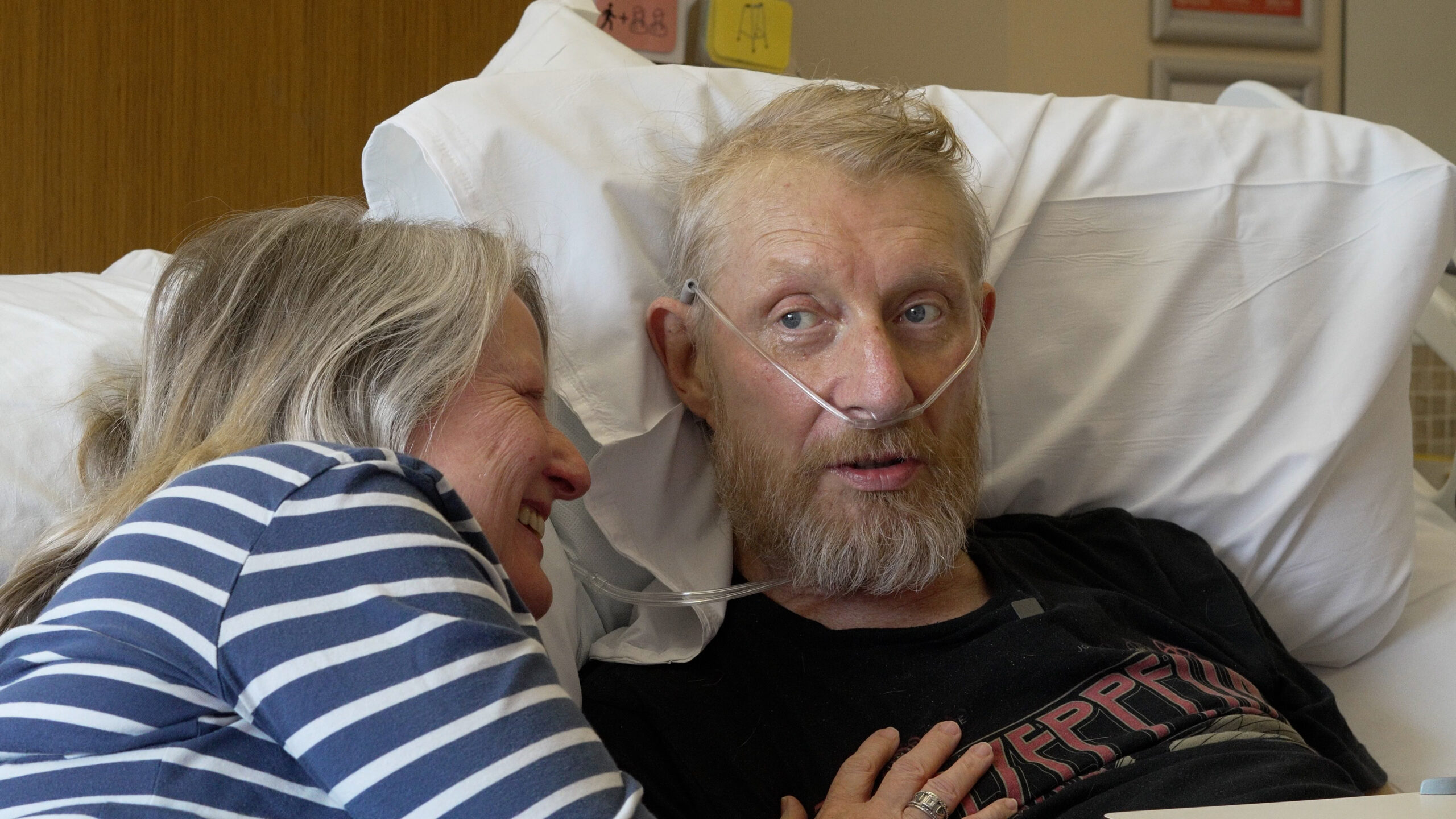 After long periods apart in hospital – often only able to reach for each other across bed rails – Alison was finally able to lie beside Rob, hold his hand through the night, and share quiet moments of normality.