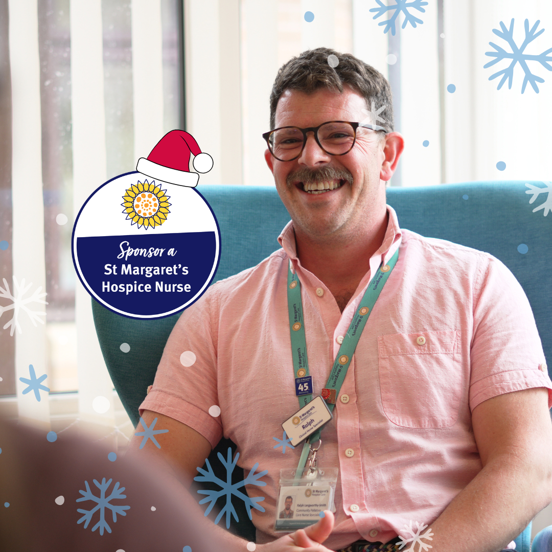 “Hi, my name is Ralph and I’m a Community Nurse at St Margaret’s. I’ve wanted to be a nurse for as long as I can remember, and over the years my interest in palliative and end-of-life care has only grown. My first nursing manager was a Marie Curie nurse by background, and she instilled in me the values of treating people with dignity and respect at every stage of life, and of truly listening to and respecting their wishes.